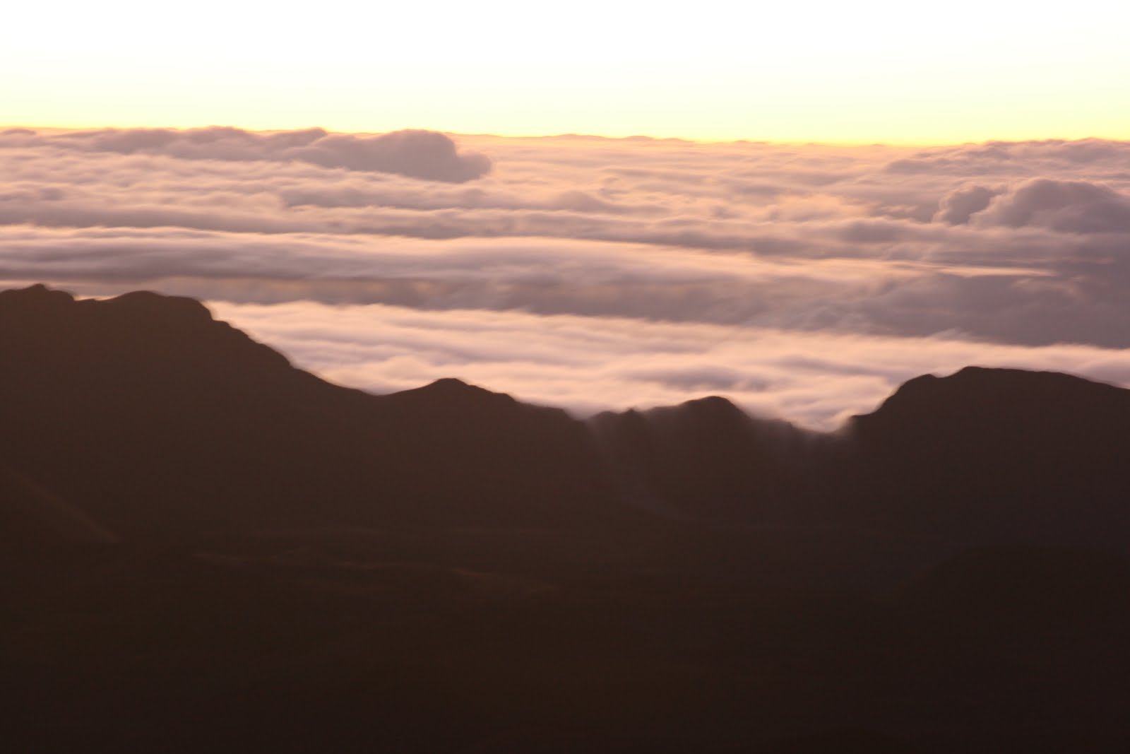That night Evie didn't sleep very well. The next morning we had planned to go up for the sunrise at Haleakala crater. Susannah decided to stay because Evie was finally sleeping and Susannah could take a little nap. Katherine, Adam and I headed up. Here are Katherine and I waiting for the sunrise. It was pretty light, but the sun hadn't come up over the clouds up that high yet.